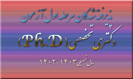 قابل توجه پذیرفته شدگان مرحله اول آزمون دکتری تخصصی پذیرفته شدگان مرحله اول آزمون دکتری تخصصی سال تحصیلی 1403-1402