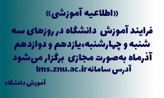 فرایند آموزش دانشگاه در روزهای سهشنبه و چهارشنبه،یازدهم و دوازدهم آذرماه بهصورت مجازی برگزار میشود: